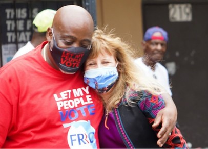MVP was an early and significant investor into FRRC’s program in the 2020 cycle, helping build out their GOTV campaign, “Free the Vote”. The campaign was a critical success that centered those most marginalized that led to one million door knocks, and registered 74,000 voters. From a comprehensive voter guide, to a Fines and Fees program that removed financial barriers to voting for 40,000 returning citizens, FRRC upheld their commitment to an inclusive democracy. Through a combined network of returning citizens, directly impacted family members, people of faith, and active community members, they made history by turning out 50,000 returning citizens to the polls for the first time in 2020.